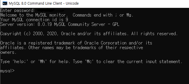 비밀번호가 처음 설치했을 때 설정해둔 비밀번호와 일치할 경우 mysql을 사용하실 수 있습니다:)