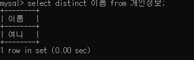 select distinct 이름 from 개인정보;