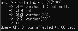 create table 개인정보(