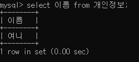 select 이름 from 개인정보;
