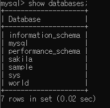를 입력하게 되면 이런식으로 컴퓨터에 저장되어 있는 데이터베이스들을 볼 수 있어요:)