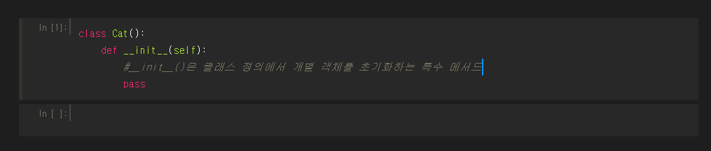 - __init__()을 정의할 때 첫 번쨰 매개변수는 self여야 한다.
