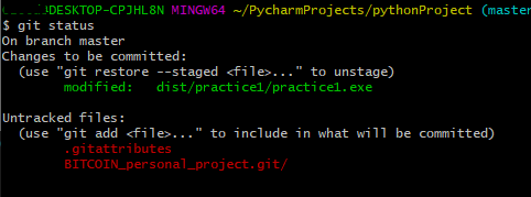 1. 먼저 깃허브에 올릴 프로젝트를 git init 명령어를 수행해서,