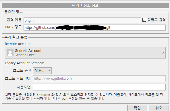 5. 추가 버튼을 눌러서 URL/ 경로에 깃허브 주소를 적는다. (레파지토리 주소)