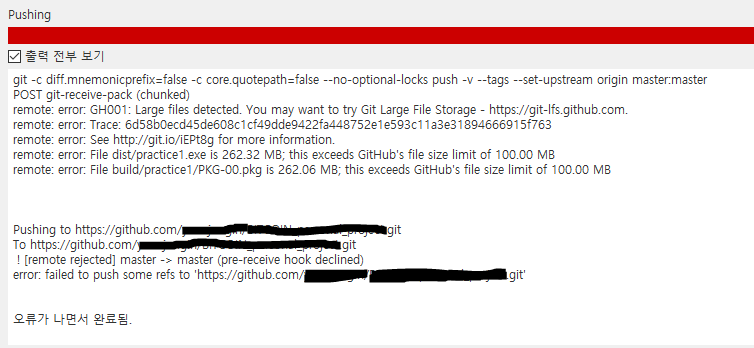 구글링을 해보니까, push하는 데이터가 많아서 그렇다는데