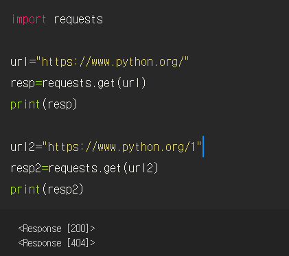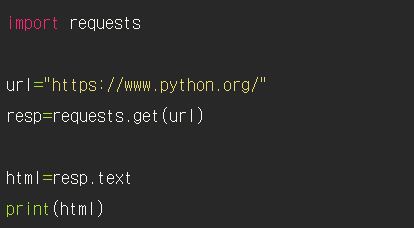 1. Request의 get()함수를 사용하여 웹 서버에 GET요청을 보낸다.