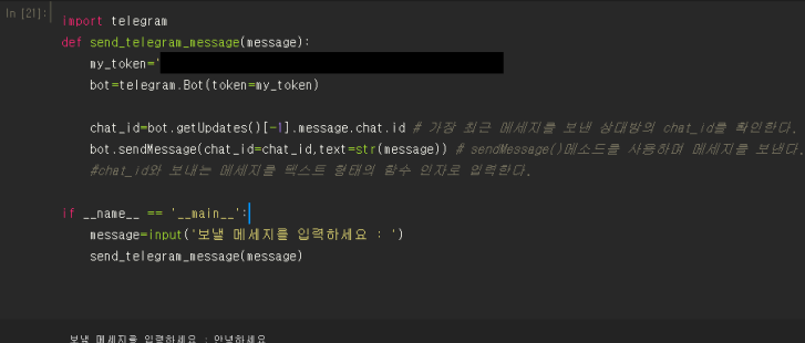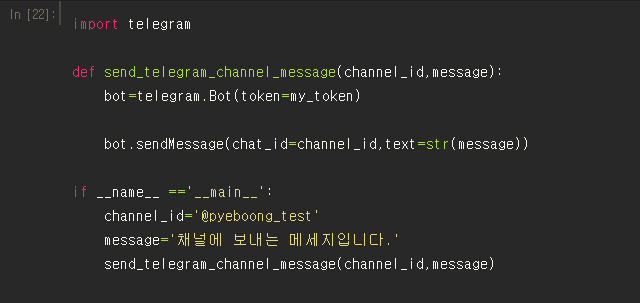 => chat_id와 보내는 메세지를 함수 인자로 입력한다.