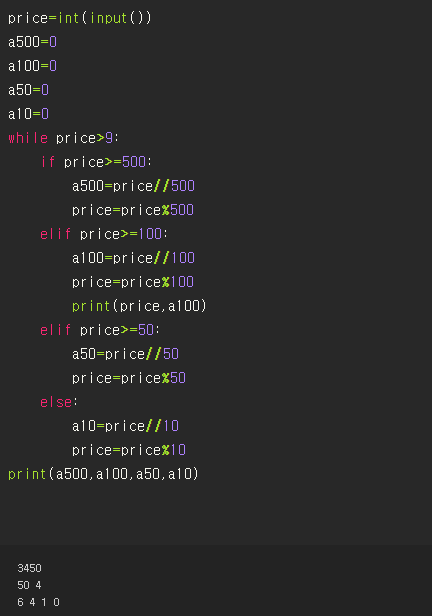 가장 큰 화폐 단위부터 돈을 거슬러준다.