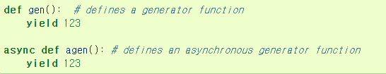 : 제너레이터 함수나 비동기 제너레이터 함수를 정의할 때 사용한다.