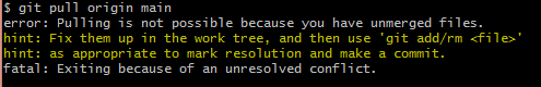 error: Pulling is not possible because you have unmerged files.
