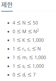 N : 격자 크기, M : 파이어볼 개수, K: 이동횟수