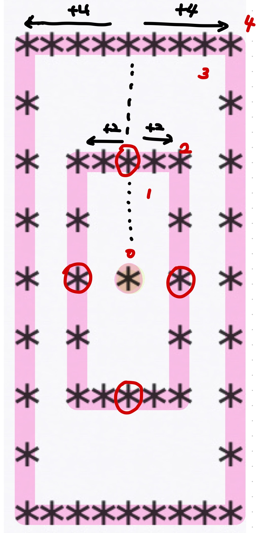 재귀함수인 것도 알았고, 행과 열을 2씩 이동해줘야하는 것도 알았는데