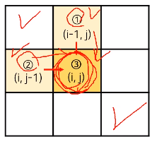 > min(최소경로(i-1,j), 최소경로(i,j-1)+값(i,j)