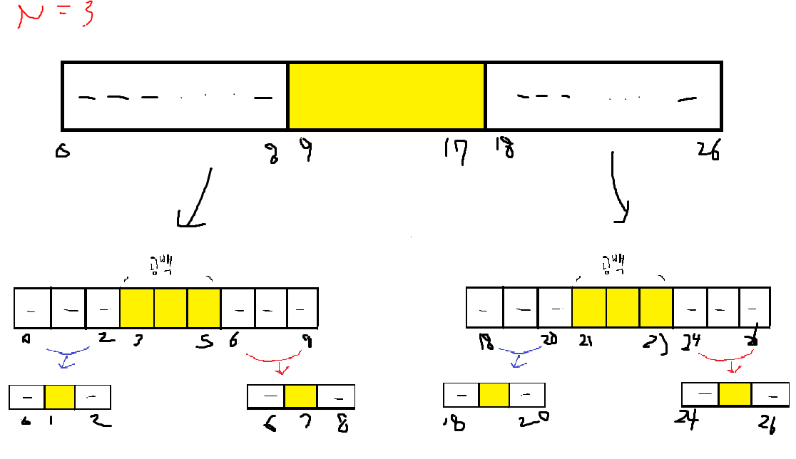 즉 recursive(array,0,27) ==> n==3