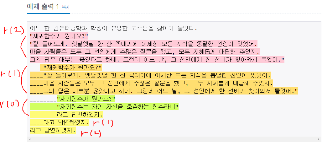 평소에 질문을 잘 받아주기로 유명한 중앙대학교의 JH 교수님은 학생들로부터 재귀함수가 무엇인지에 대하여 많은 질문을 받아왔다. 매번 질문을 잘 받아주셨던 JH 교수님이지만 그는 중앙대
