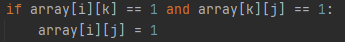 if array[i][k] == 1 and array[k][j] == 1: