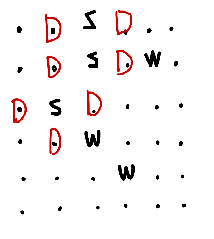 if a[x].count('SW') > 0 or a[x].count('WS') > 0: