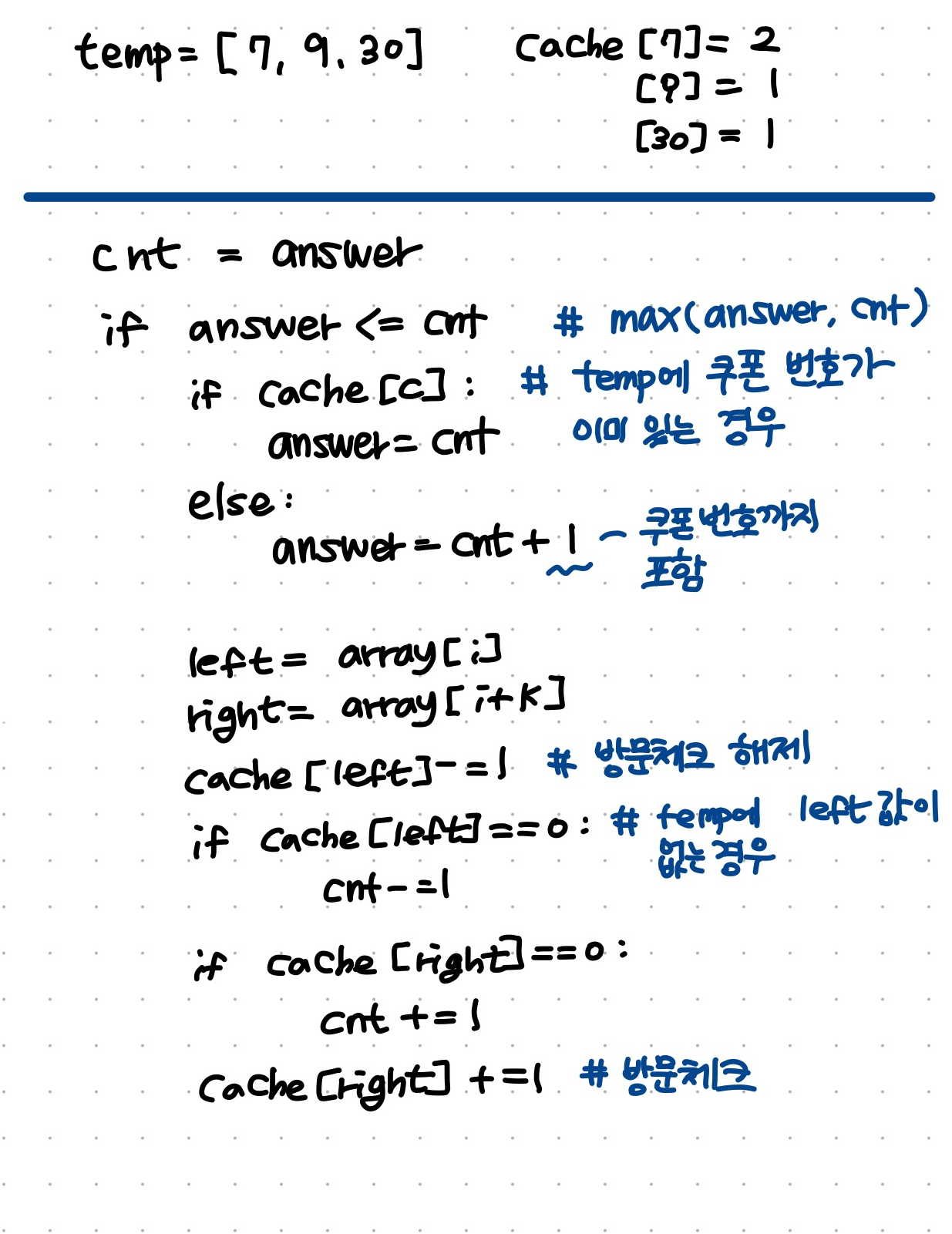 -> answer = cnt+1 (쿠폰 번호 초밥을 temp 리스트에 넣어준다)