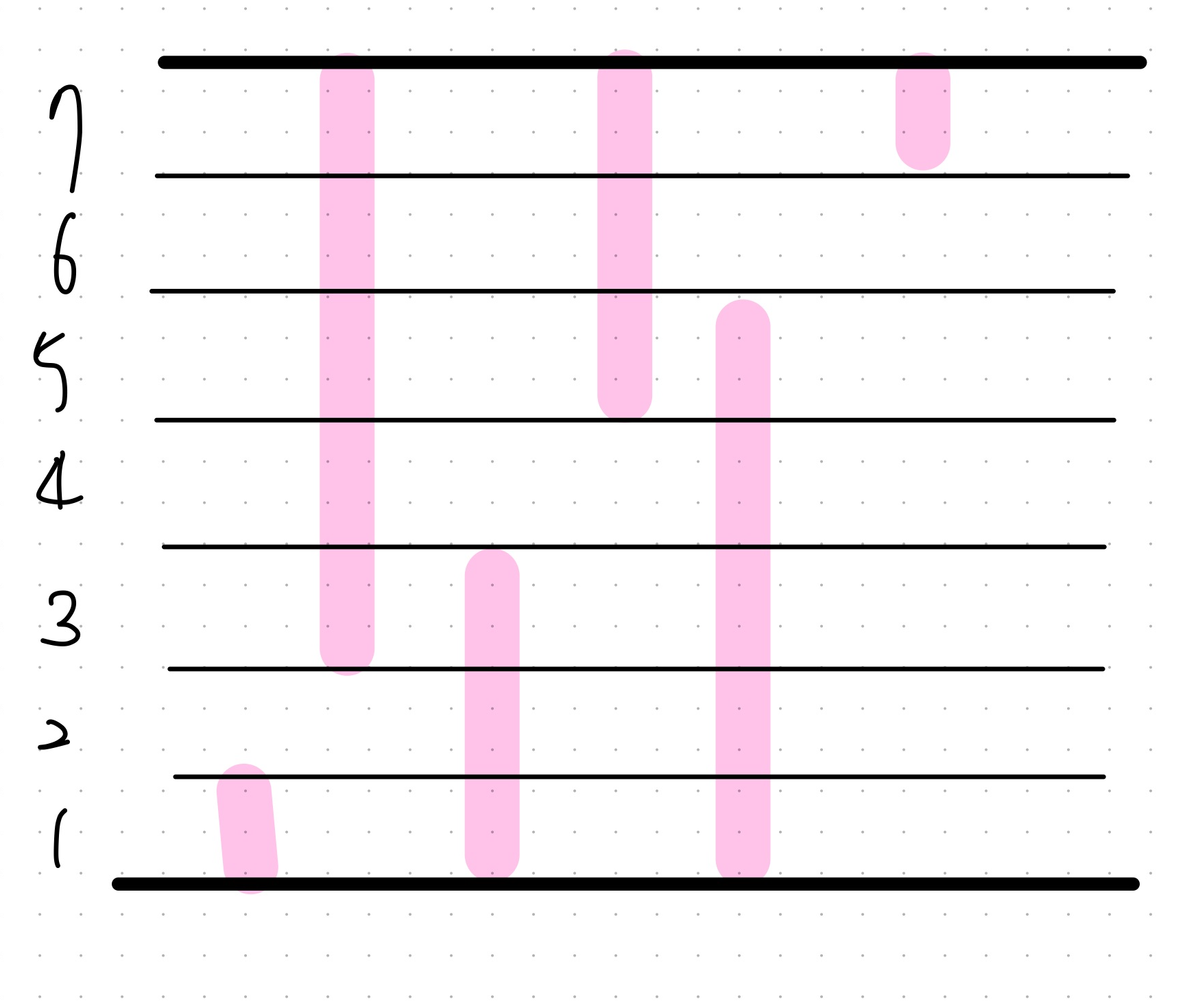 각각의 석순이 어느 높이에 걸쳐있는지 살펴봐야한다.