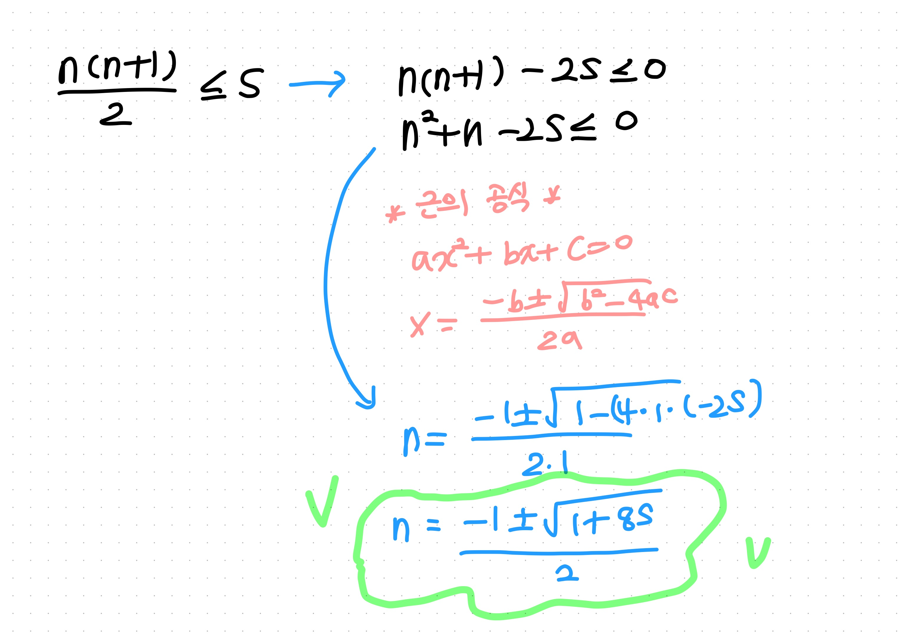 while i * (i + 1) //2 <= s: