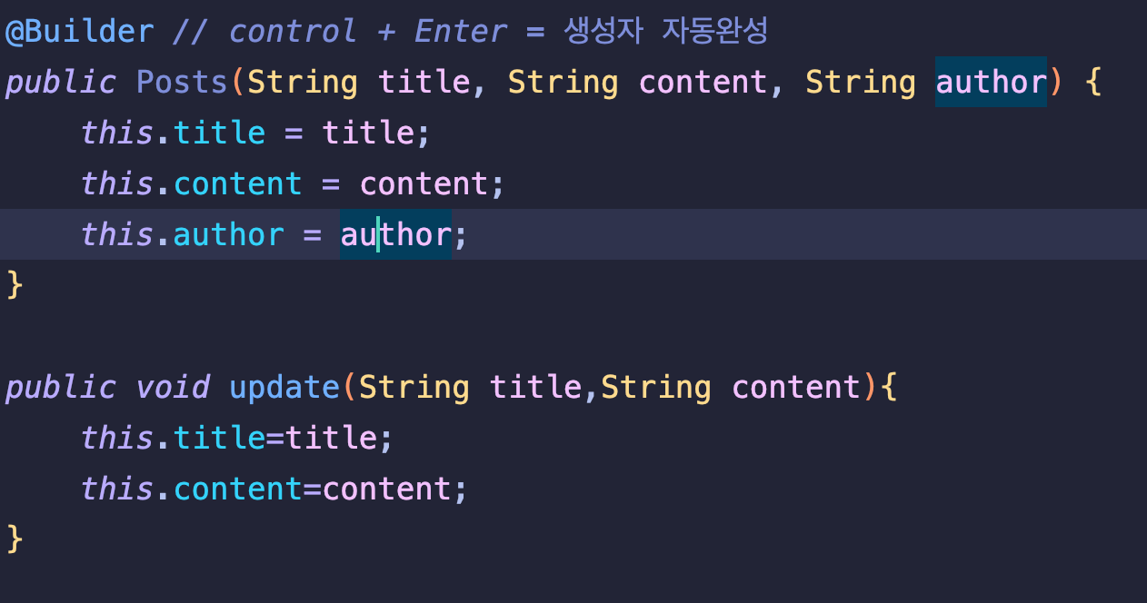 따라서 생성자로 entity를 받아서 필드에 넣어줍니다.