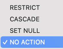 외래키에 적용할 수 있는 제약사항은 총 4가지가 있다.