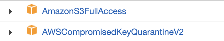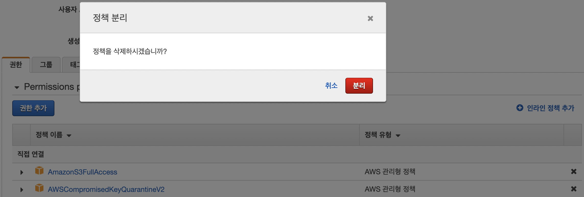 AWSCompromisedKeyQuarantineV2 정책을 삭제해줍니다.