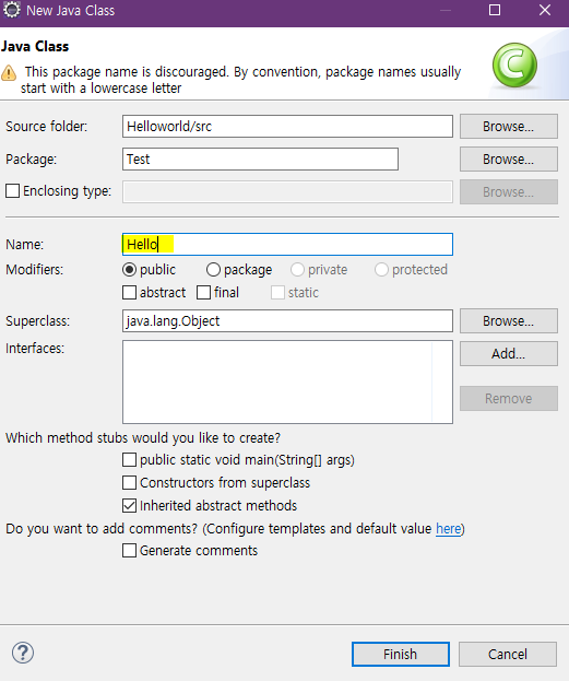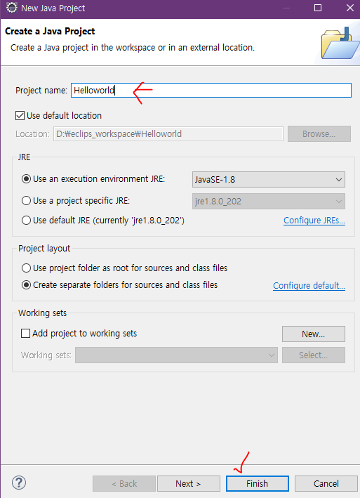 프로젝트명을 변경하고 Finish 버튼 클릭!