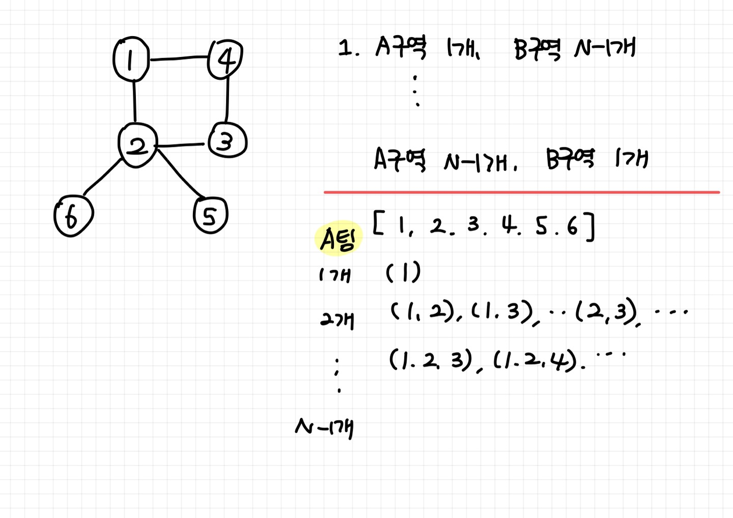 1개의 구역을 뽑을때, 2개의 구역을 뽑을때 -> for문을 이용하여 comb 함수를 호출한다.