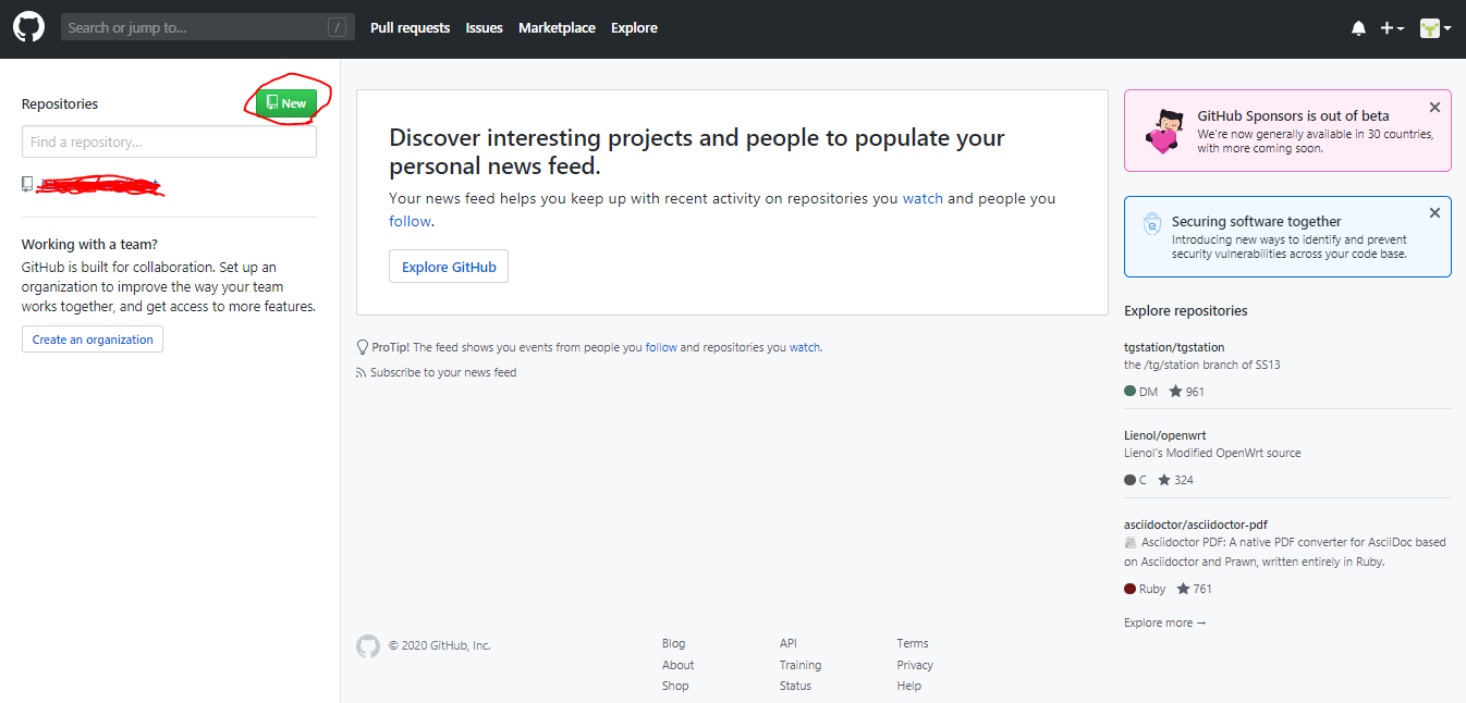 저건 이제 저장소(Repositories)를 만드는 버튼인데요:)