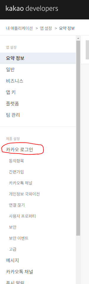 1. Kakao Developers 홈페이지 접속 > 내 어플리케이션