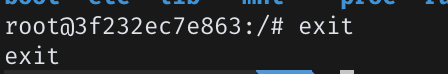 exit 명령어를 통해 컨테이너 내부에서 호스트의 도커 환경으로 돌아옴
