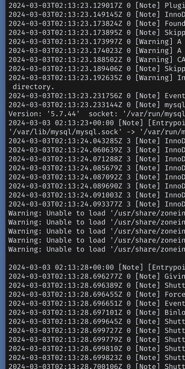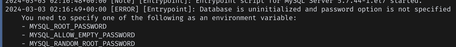 지정하지 않아 컨테이너가 시작되지 않는다.
